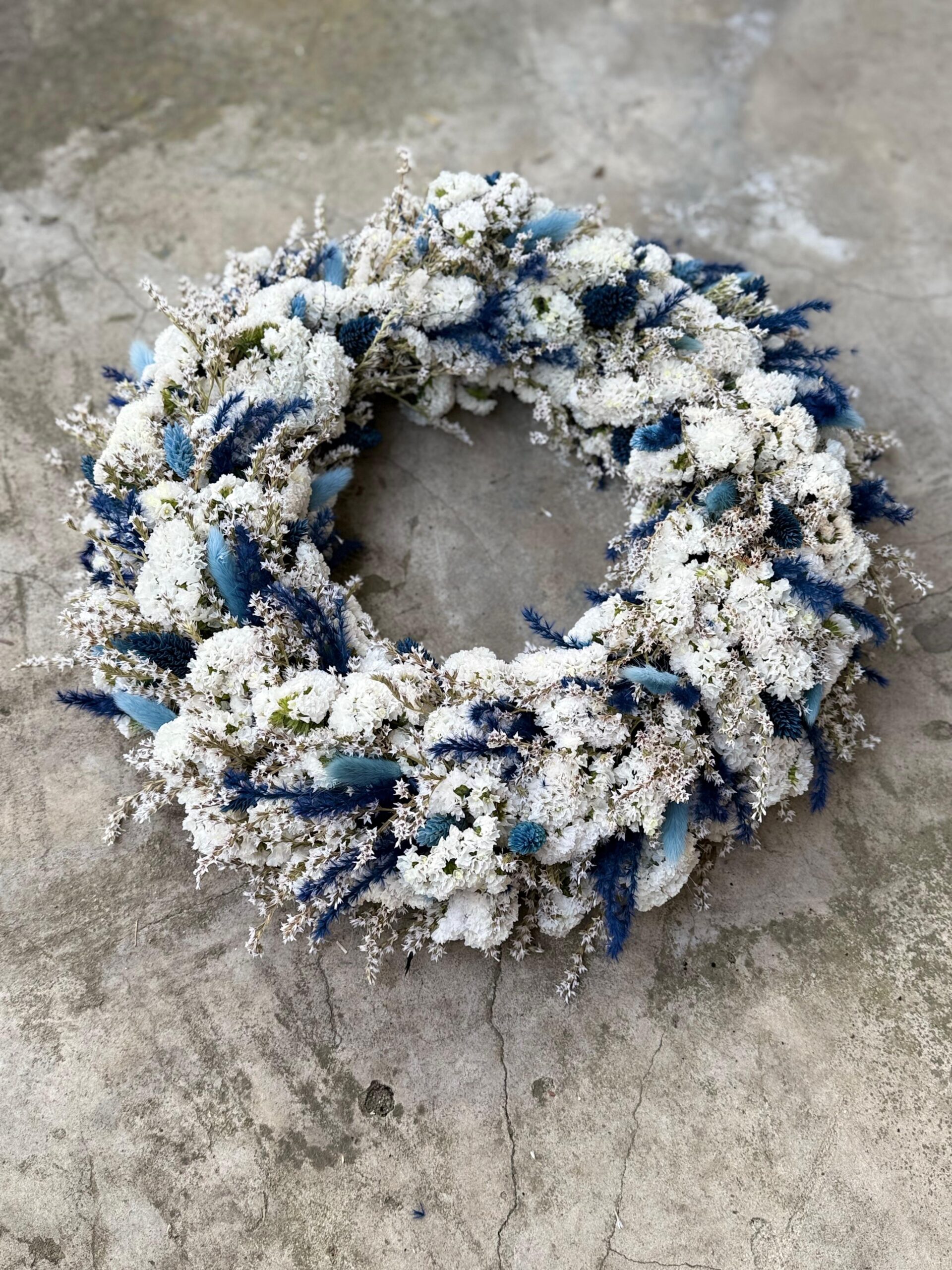 BIEL I BŁĘKIT wianek z suszonych kwiatów